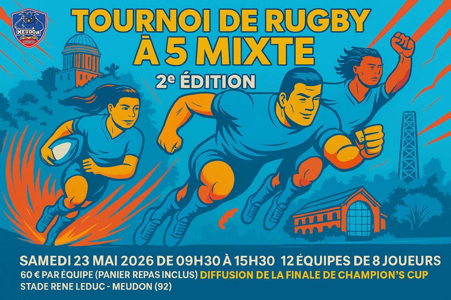 Tournoi de Five de Meudon Le club organise un tournoi de rugby à 5 (touché) mixte (au moins 1 fille en permanence …